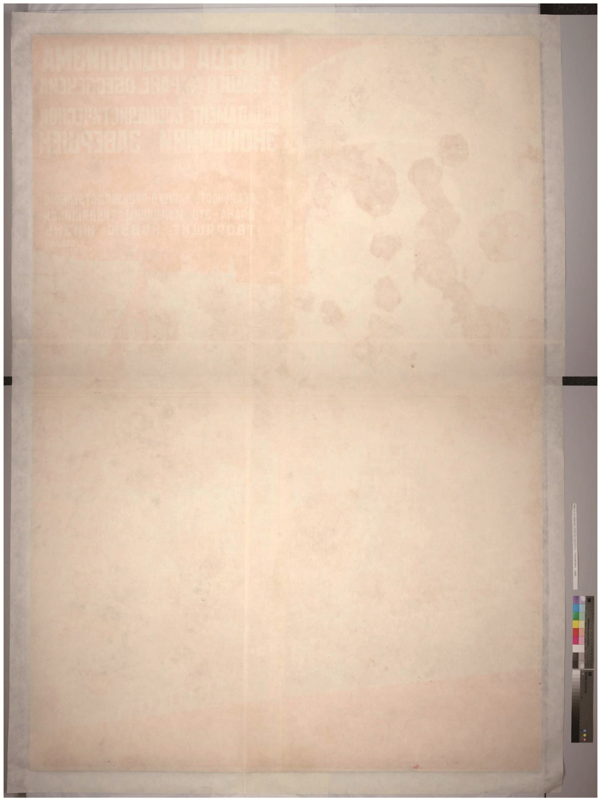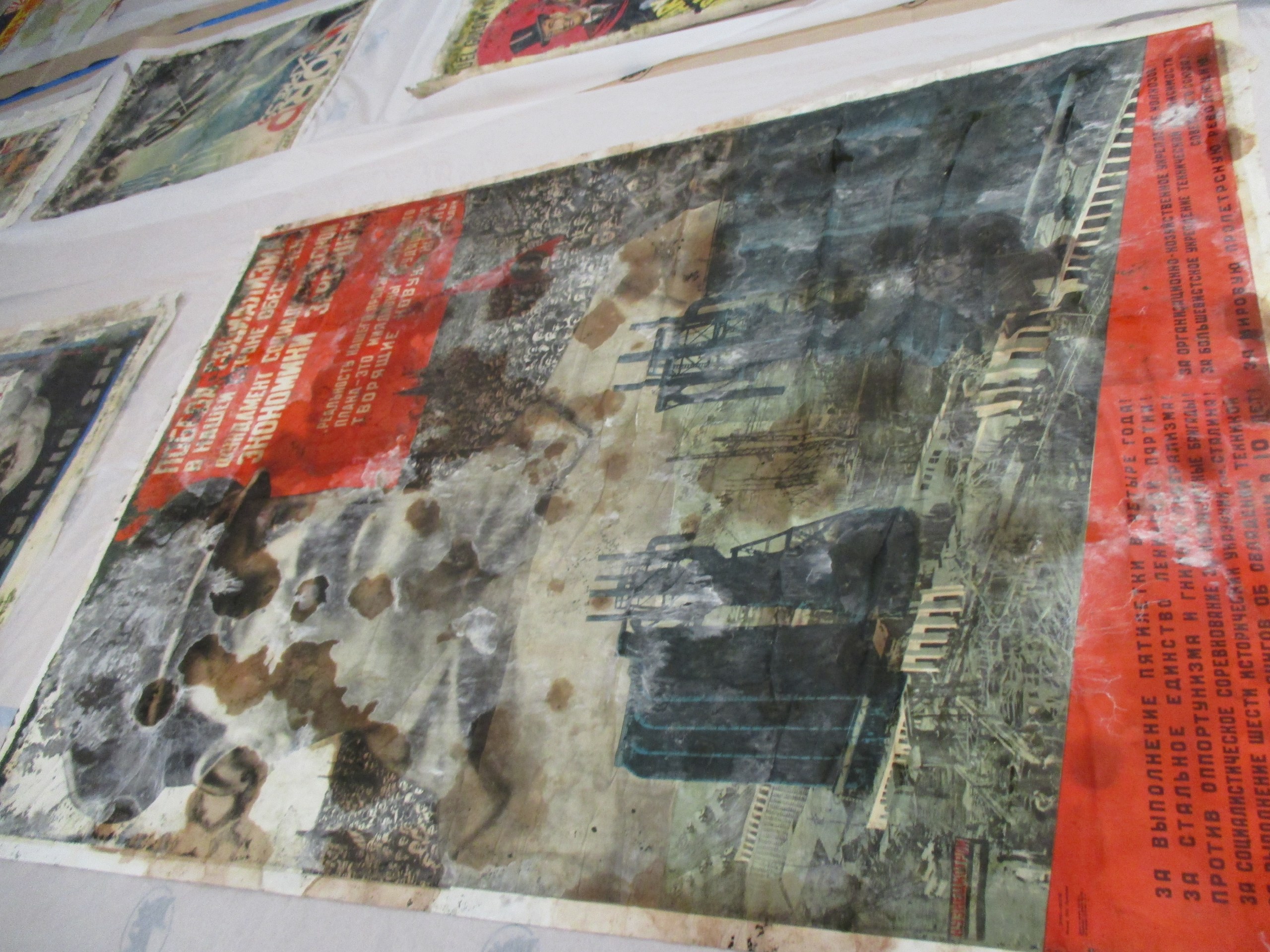 本作品の修復は2023年4月から2024年2月まで、約10か月にわたり処置が行われました。応急処置から修復まで、様々な方に関わっていただきました。当館はこうしたソ連のプロパガンダポスターを多数収蔵しており、将来的には修復を終えた作品を展覧会などの機会でご紹介できればと思います。