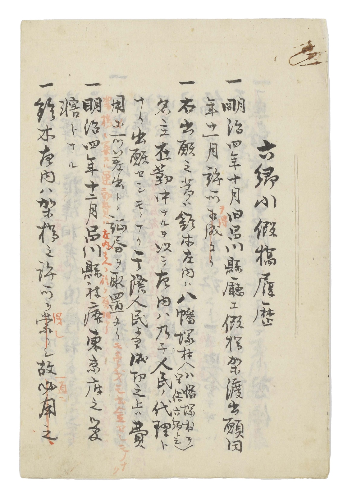 20)東海道六郷川架橋ニ付道路変換ノ伺(部分)
