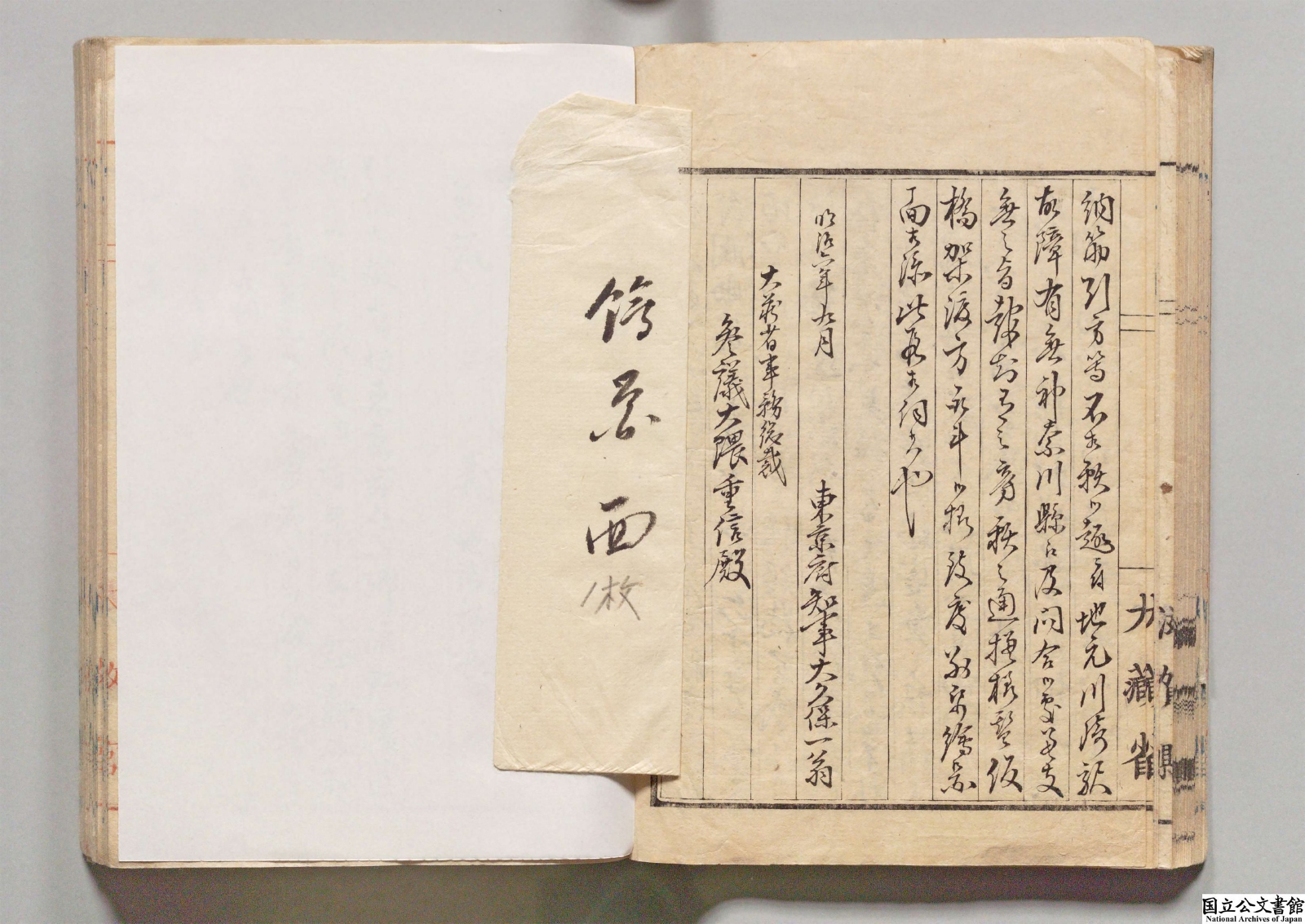 川崎駅役人惣代から神奈川県へ提出した請書。
